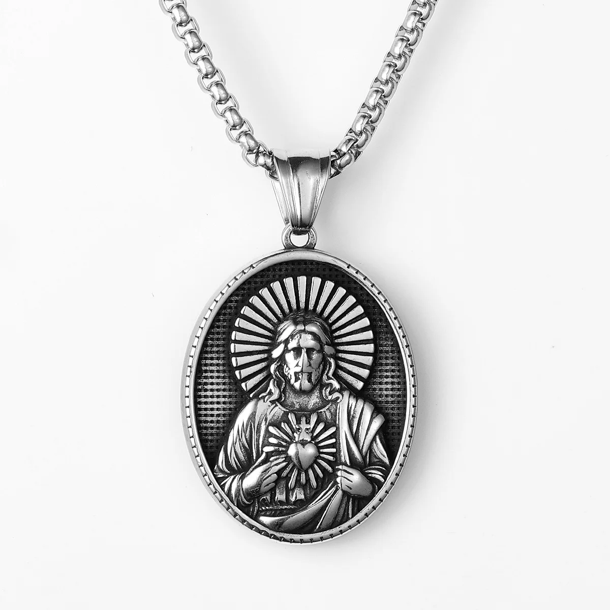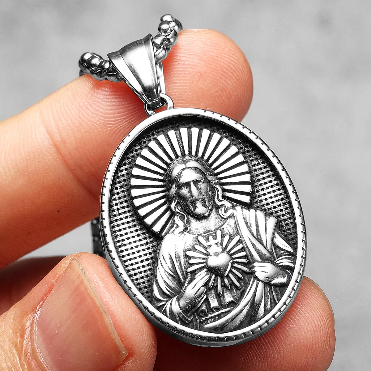 Poderoso Amuleto de Jesus Cristo de aço inoxidável masculino